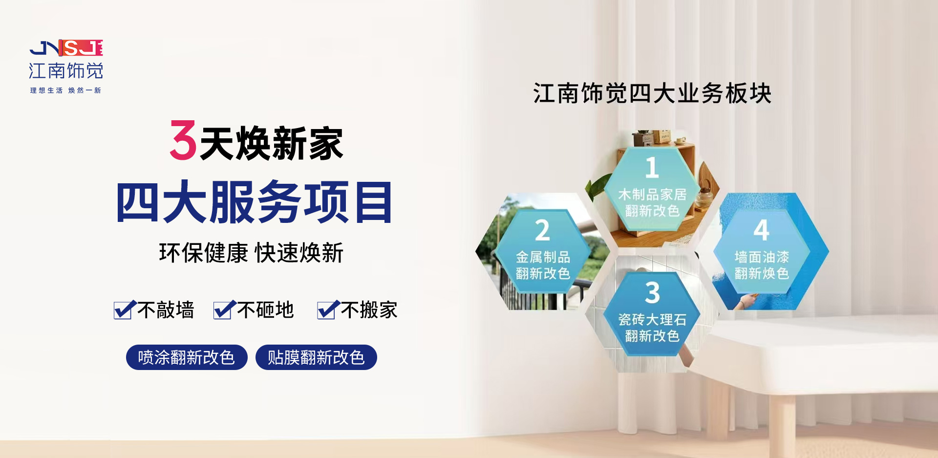 品牌介紹BRAND INTRODUCTION江南飾覺家居煥新連鎖品牌誕生于2023年,由浙江家居修護(hù)行業(yè)優(yōu)秀一眾人士共同創(chuàng)建,總部坐落于浙江溫州,是一家專業(yè)致力于家居煥新改造連鎖品牌,老房陳舊裝修家居煥新、省錢、省心、快捷、實(shí)現(xiàn)煥新家,為消費(fèi)者打造高···